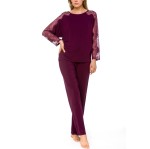 Elegancka piżama wykonana z miękkiego i delikatnego micromodalu, który jest bardzo chłonną i wygodną w noszeniu dzianiną. Góra piżamy to bluzka, w której główną rolę gra koronka. Koronkowa wstawka w połączeniu z dzianiną tworzy oryginalny rękaw, dzięki któremu cały set nabiera wyjątkowego charakteru. Proste spodnie na gumkę to idealne dopełnienie tego komfortowego kompletu do spania. Ten pozornie klasyczny model dostęny jest w dwóch kolorach: klasycznej czerni oraz w głębokim, jesiennym odcieniu wina.