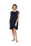 Koszulka nocna z najnowszej letniej kolekcji uszyta jest z bawełnianego batystu – tkaniny przewiewnej i oddychającej, czyli idealnej na lato. Granatowy batyst ozdobiony jest koronką w tym samym, głębokim i eleganckim odcieniu. Koronka tworzy rękawy tej uroczej koszulki nocnej, którą z powodzeniem wykorzystacie latem jako wakacyjną sukienkę. Zaokrąglony dekolt ozdobiony jest uroczym marszczeniem, a luźny krój świetnie sprawdzi się zarówno w sypialni, jak i na plaży. Z tego samego batystu w niesamowitym wieczorowym odcieniu granatu dostępnych jest więcej letnich koszulek, sukienek i piżam.
