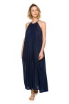 Wakacyjna sukienka z najnowszej letniej kolekcji uszyta jest z bawełnianego batystu – tkaniny przewiewnej i oddychającej, czyli idealnej na lato. Sukienka o długości maxi, ma okrągły dekolt, którego głębokość można regulować zawiązywaną na plecach tasiemką. Sukienka nie ma rękawów, a jej luźny krój świetnie sprawdzi się podczas wakacji lub w sypialni, jako wygodna i oddychająca koszula nocna. Z tego samego batystu w niesamowitym wieczorowym odcieniu granatu dostępnych jest więcej letnich koszulek, sukienek i piżam.