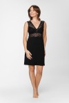 Czarna koszulka nocna uszyta z oddychającego micromodalu. Zdobiona ręcznie wycinanymi koronkami. Wygodna długość przed kolano.