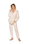 Damska rozpinana bluza z kapturem o swobodnym kroju, do noszenia na co dzień. Z przodu kieszeń kangurka. Bluza uszyta jest z oddychającego i bardzo przyjemnego materiału, który powstał z połączenia bawełny z wiskozą i z lnem. Fason w lnianym kolorze sprawdzi się zarówno podczas ciepłego wieczoru, jak i chłodniejszej nocy. Bluzę można skompletować z prostymi spodniami z tej samej kolekcji.