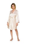 Subtelny, zmysłowy, glamour – taki jest on, satynowy szlafrok z rękawami i dekoltem zdobionymi haftem. Bogactwo zdobień nie przyćmiewa, a tworzy przemyślaną całość, która sprawi, że każdy poranek będzie wyjątkowy. Szlafrok dostępny jest w dwóch kolorach. Można połączyć go z koszulka nocną z tej samej jedwabistej satyny, tworząc kobiecy nocny set.