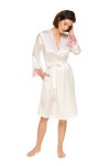 Klasyczny damski szlafrok z satyny z koronkowymi zdobieniami, model dostępny w dwóch kolorach.