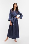 Satynowy szlafrok o długości maxi z pięknym koronkowym zdobieniem.