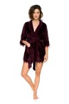 Krótki szlafrok z ciepłej i przyjemnej dzianiny, z półokrągłymi rozcięciami na rękawach oraz na wysokości bioder. Szlafrok w talii przewiązywany jest paskiem. Z prawej strony znajduje się kieszonka obszyta uroczą falbanką, która zdobi również rękawy, dół i brzegi szlafroka. Ten szlafrok to nasz bestseller, który w tej kolekcji szyjemy w kilku nowych kolorach. Model idealny na chłodniejsze jesienne i zimowe dni. Ciepła i przyjemna dzianina w połączeniu z delikatną koronką tworzy spójną, nieco figlarną całość, którą pokochały klientki COEMI.