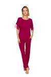 Śliczna damska piżama uszyta z wygodnego i oddychającego micromodalu. Model dostępny jest w trzech wakacyjnych kolorach. Ręcznie wycinana koronka zdobi rękawki koszulki z zaokrąglonym dekoltem. Dół piżamy to wygodne i proste spodnie z kieszeniami i elastyczną talią. Fason świetnie sprawdzi się jako komfortowa piżama lub wygodny strój na co dzień. W tych samych wakacyjnych kolorach dostępnych jest kilka innych modeli bielizny nocnej – do obejrzenia w zakładce produkty powiązane.
