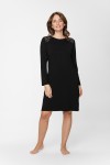 Czarna koszulka nocna, o kroju tuniki, uszyta z oddychającego micromodalu. Zdobiona ręcznie wycinanymi koronkami, które na plecach tworzą zjawiskowy dekolt.