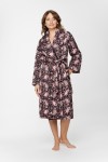 Damski szlafrok o długości za kolano uszyty z tkaniny w piękny wzór paisley. Szlafrok jest pikowany i ocieplany. Ma krój płaszcza. Można go skompletować z koszulką nocną z wiskozy uszytej z tej samej wzorzystej tkaniny.