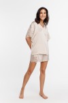 Piżamka z jedwabistej satyny dostępna w 3 kolorach Idealna na lato, damska piżamka uszyta z jedwabistej satyny. Nogawki i rękawy piżamy ozdobione są ręcznie wycinaną koronką. Jedwabista satyna, z której uszyto ten fason, jest miękka, niezwykle delikatna, przyjemna w dotyku, a dodatkowo pięknie układa się na ciele. Piżama dostępna jest w 3 kolorach.