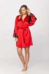 Damski szlafrok uszyty z pięknej, jedwabistej satyny. Ręcznie wycinane koronki subtelnie zdobią rękawy szlafroka. Fason o długości mini dostępny jest w dwóch przepięknych kolorach: czerwonym oraz niebieskim. Do kompletu zaprojektowałyśmy koszulki nocne uszyte z tej samej jedwabistej satyny.