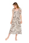 Batyst, z którego uszyłyśmy ten model, świetnie sprawdza się latem. Naturalny materiał jest przewiewny i pozwala skórze oddychać. Lubimy uniwersalne rozwiązania, więc postanowiłyśmy stworzyć model, który może służyć jako wygodna koszula do spania albo jako wakacyjna sukienka o długości 7/8. Luźny fason nie krępuje ruchów i świetnie sprawdza się w niezobowiązujących wakacyjnych stylizacjach. Szerokie ramiona koszuli wiąże się na ramionach – można nimi regulować długość oraz głębokość dekoltu. Nie mogło tu zabraknąć letnich akcentów takich jak wzór w palmowe liście oraz głęboki dekolt na plecach. Koszula dostępna jest też w bardziej klasycznym wydaniu: z mniejszym dekoltem i z tradycyjnymi ramiączkami.